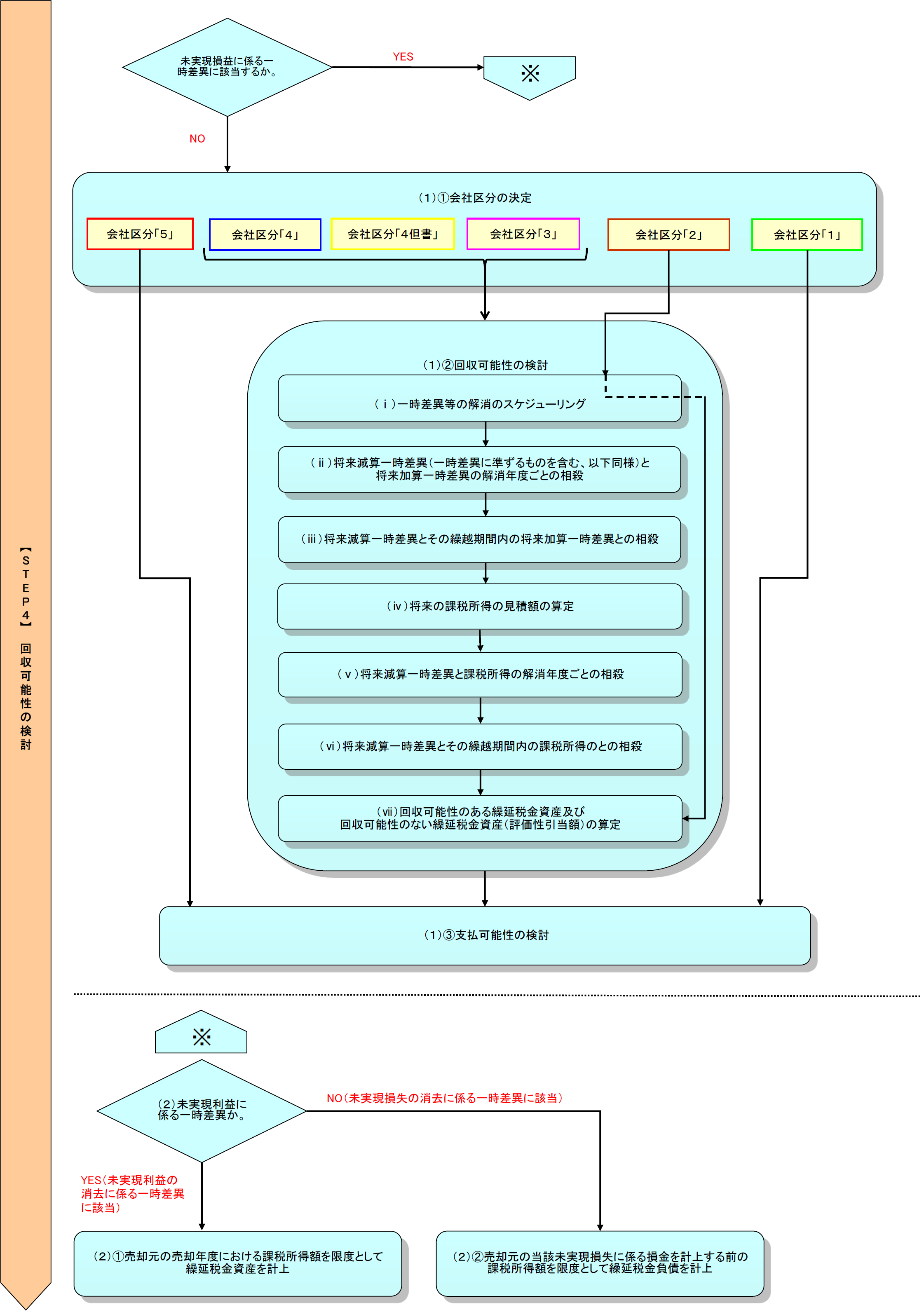 そこで、【STEP4】では、納税会社ごとに未実現利益に係る一時差異とそれ以外の一時差異に分けて回収可能性を検討する必要がある。