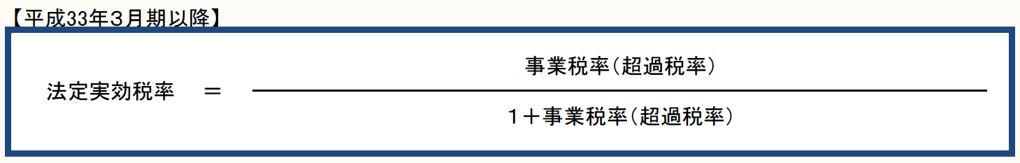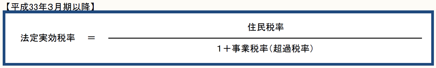 なお、繰延税金資産の回収可能性が法人税と事業税で異なる場合又は住民税と事業税で異なる場合で、かつ、その影響が大きい場合、上記の法定実効税率をそのまま適用することは適当ではないため、法人税と住民税の法定実効税率の分母に使用する事業税率を修正する(実務対応報告第7号「連結納税制度を適用する場合の税効果会計に関する当面の取扱い(その2)(以下、「実報7号」という)Q5、[参考])。