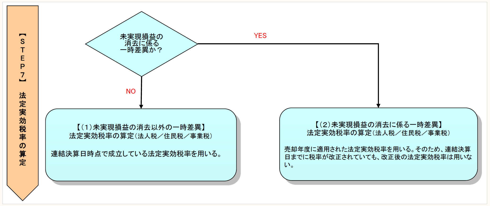 ただし、未実現損益の消去に係る一時差異とそれ以外の一時差異で用いる法定実効税率は異なる。そのため、それぞれで法定実効税率を算定する。