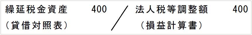 損益計算書では「法人税等調整額 400」が表示されるが、貸借対照表では「繰延税金資産 400」が表示される。つまり、税効果会計の適用により、貸借対照表では、基本的に、繰延税金資産及び繰延税金負債が計上されることになる。