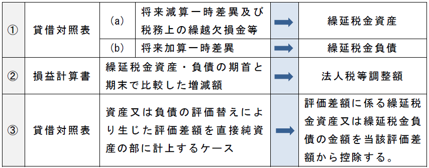 税効果会計の適用に伴い、次のように会計処理される(「個別財務諸表における税効果会計に関する実務指針」(会計制度委員会報告第10号。以下「個別税効果会計実務指針」という)15項)。